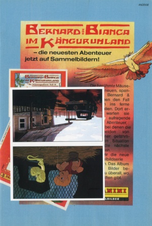 | + | [[Bild:Beilage FF 1991-49.jpg|thumb|right|Sammelbilder Paninialbum "Bernard und Bianca im Känguruhland"]] | ||