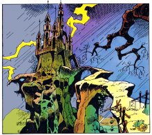 | + | Als Schauplatz der haarsträubenden Ereignisse hielt Mordu-Mordus finsteres '''Schloss Knastermaus''' her. [[Bild:Knastermaus.png|thumb|220px|rechts|Das Grusel-Schloss]] | ||