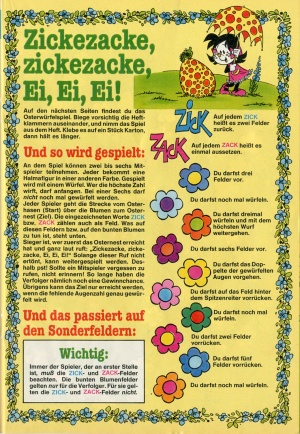 Spiel: Zickezacke, zickezacke, Ei, Ei, Ei! - Bastelbogen aus Fix und Foxi 14/1986