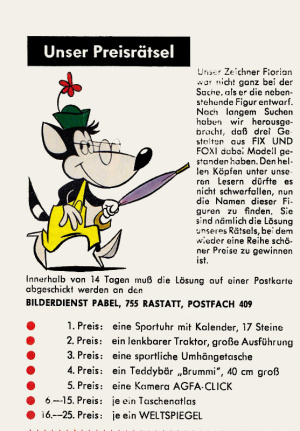 - Figuren: Fix, Foxi, Fax, Lupo