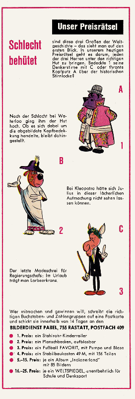 - Anmerkung: Die jeweils drei Panels pro Streifen sowie die ungewöhnlich breiten vertikalen "Rinnsteine" deuten auf ein ummontiertes Überbleibsel aus der Zeit der 5-Reiher hin.